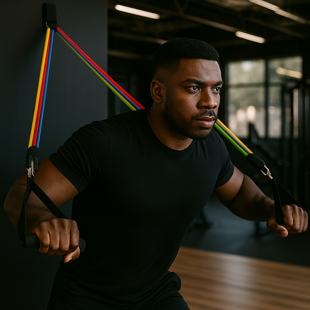 ✔ Résistance évolutive – 5 bandes cumulables (10 à 150 lbs) pour s’adapter à ton niveau et à ton ambition.